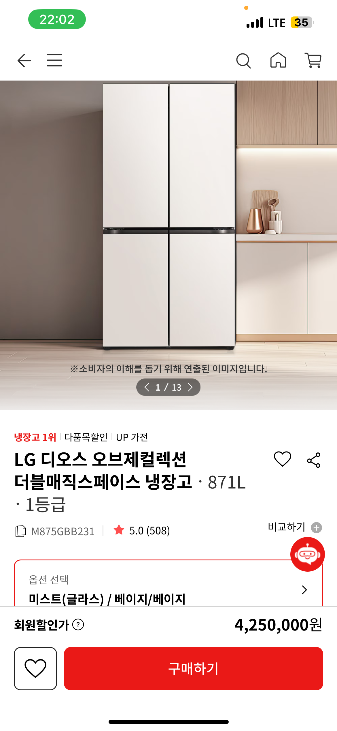 LG 디오스 오브제컬렉션 더블매직스페이스 냉장고 871L 1등급